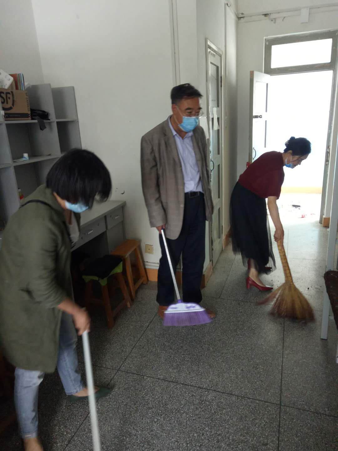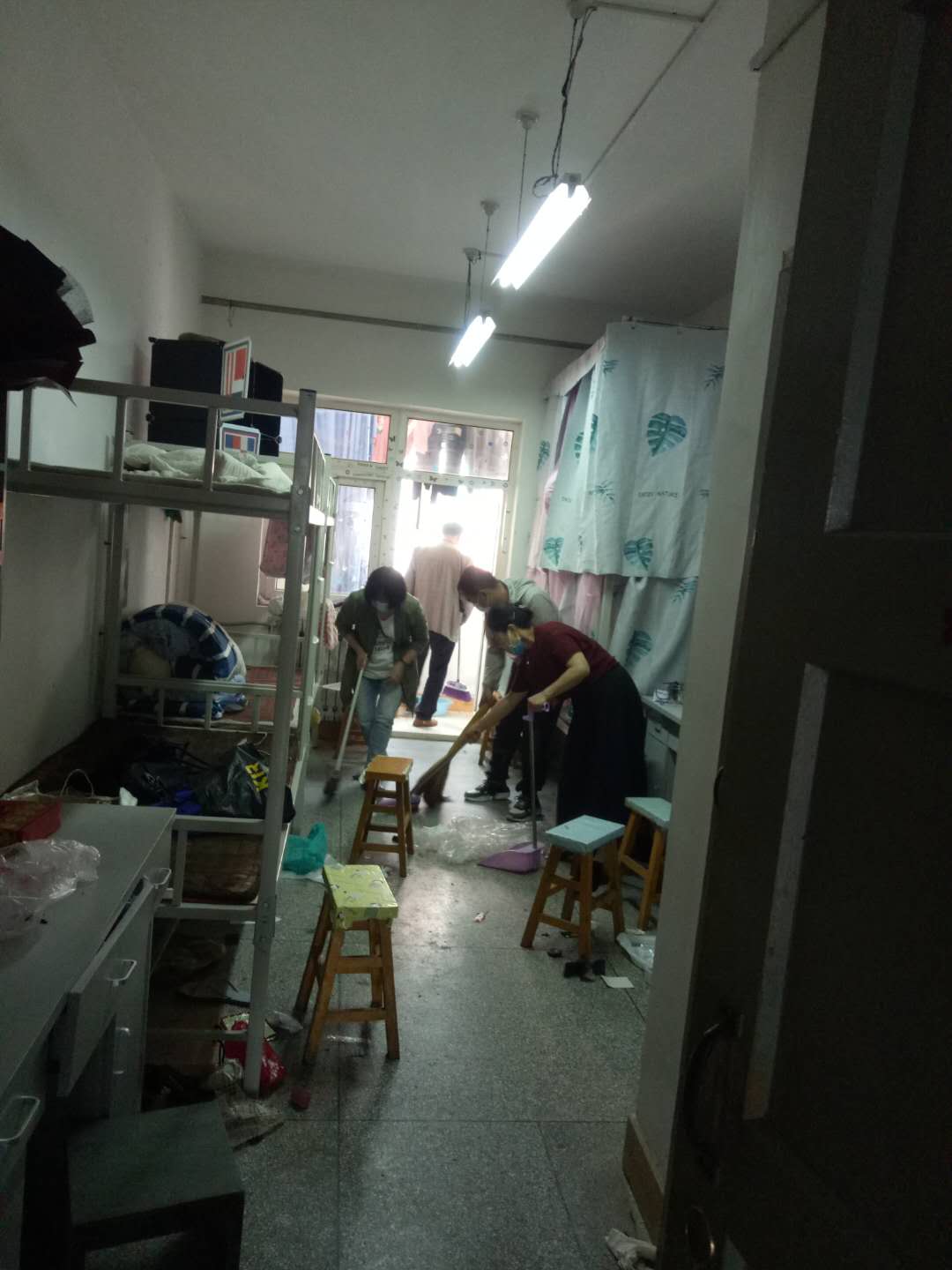 工作安排会议后公司班子成员深入员工公寓对毕业生宿舍进行了通风、卫生清洁。