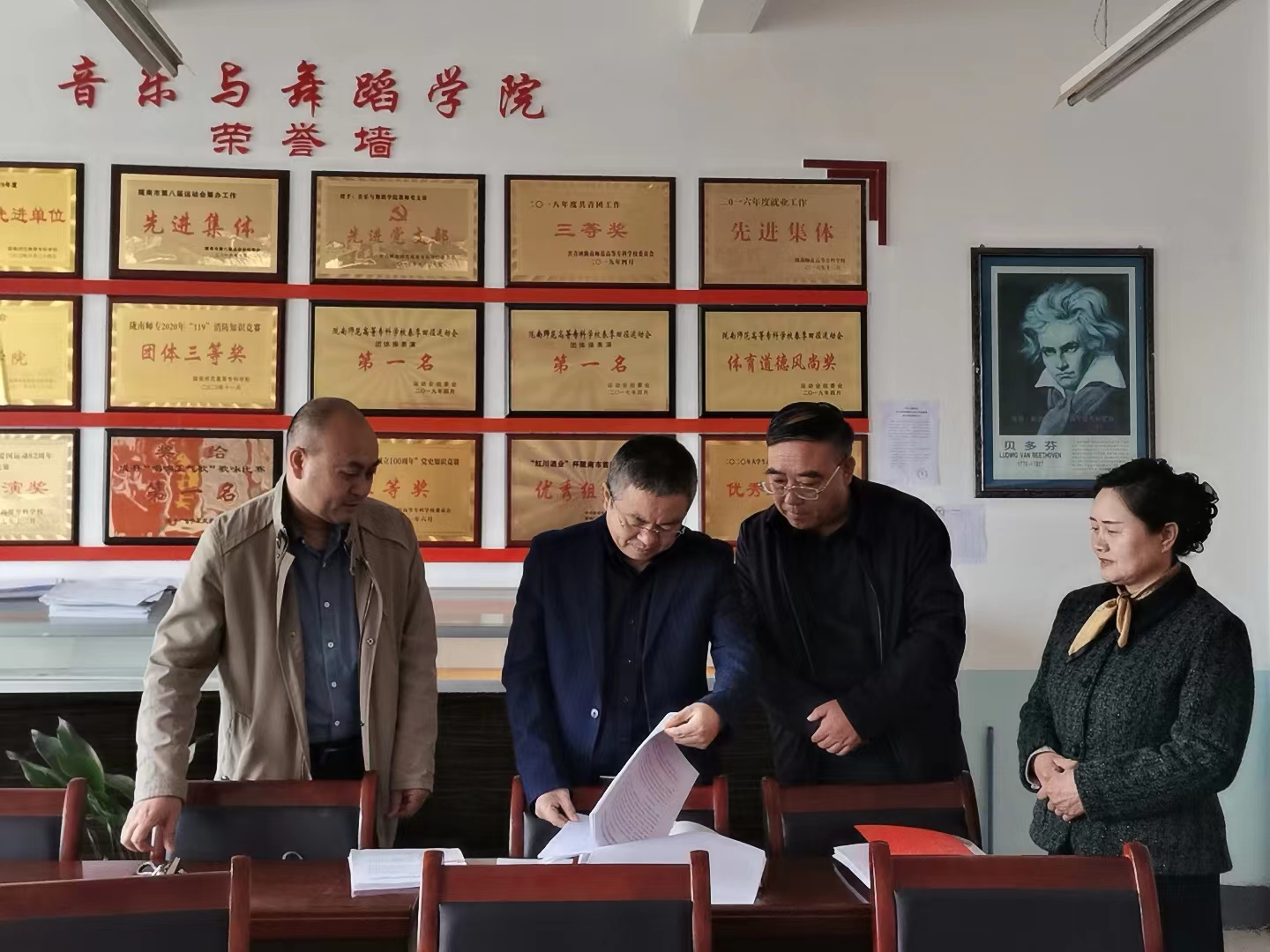 10月30日上午,公司党委书记张弢在公司办公室主任李杰的陪同下到太阳集团122cc检查指导工作。张书记到公司后,公司党总支书记王亚文、经理周新美陪同先后到公司党员活动室、办公室、教室、教师琴房、员工琴房、舞蹈练功厅进行检查,指出了存在问题。张书记还对公司“三会一课”等党组织会议(学习)情况进行了检查,听取了公司负责人工作汇报,查阅了会议(学习)记录。张书记指出,“三会一课”等党组织会议(学习)一定要落实好第一议题制度,规范会议(学习)记录。