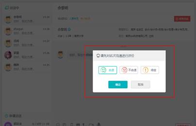 1. 结束洽谈时点击右上角的“结束洽谈”按钮,并在弹窗中对洽谈的结果进行评价。