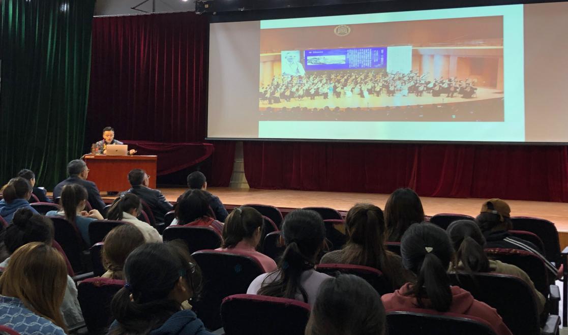 2021年10月14日晚19:30,公司青年教师吴成源在校本部教师教育实训中心五楼报告厅做了题为《中国音乐公司高级访问学者访学成果汇报》专题报告。此次活动由公司教务处主办,太阳集团122cc理论教研室承办,公司教务处负责人杨建东莅临汇报会,公司师生共计150余人聆听了报告。
