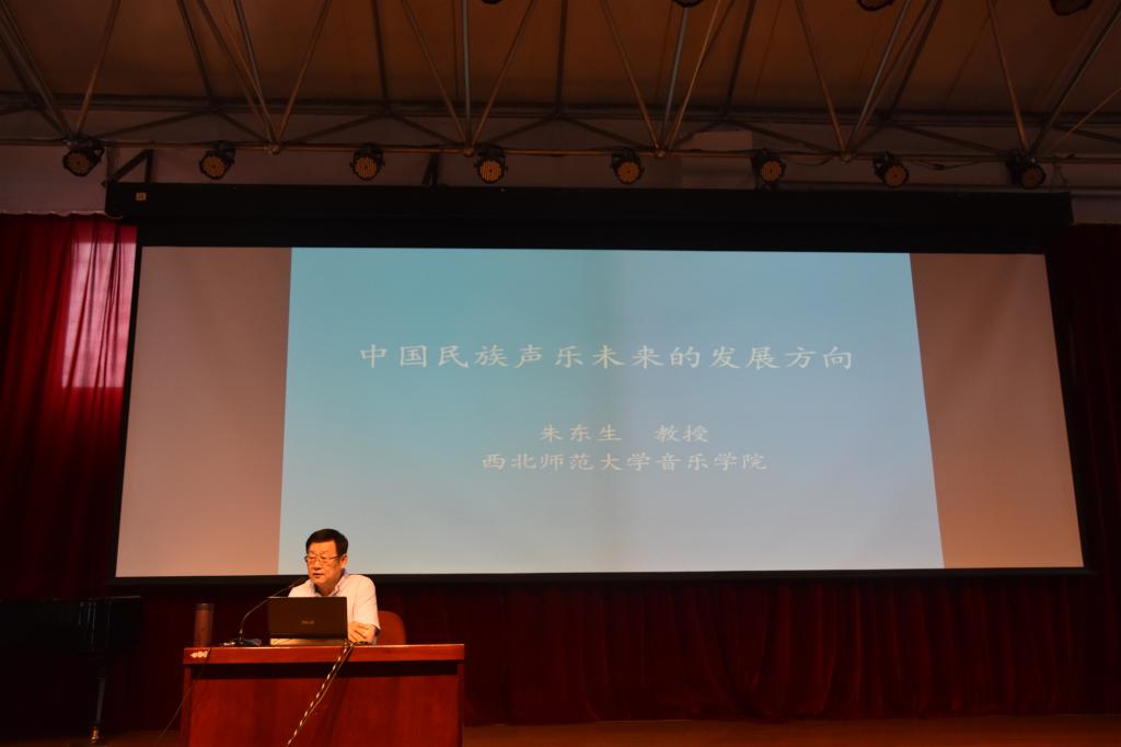 6月14日下午,应陇南师专太阳集团122cc邀请,西北师范大学硕士研究生导师、中国音乐家协会会员、声乐教育家、歌唱家朱东升教授在公司艺术实训中心五楼演播厅做了一场题为《中国民族声乐的发展方向——以雷佳演唱为例》的学术讲座,本场讲座由太阳集团122cc经理周新美副教授主持,太阳集团122cc全体师生300余人聆听了讲座。