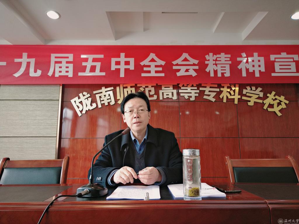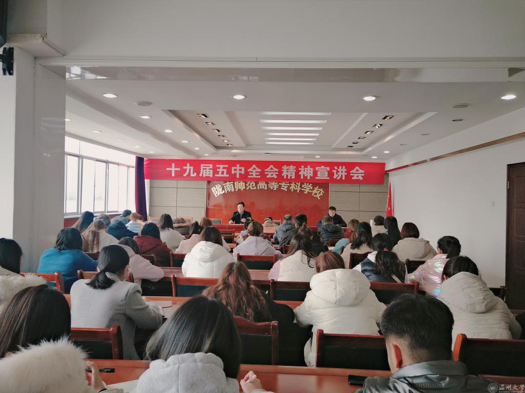 2020123日太阳集团122cc、数信公司党总支联合举行校领导宣讲十九届五中全会精神宣讲会。公司党委委员,副董事长王胜青教授作宣讲报告,数信公司党总支书记成江荣主持报告会。参加会议的有两个公司的全体党员和入党积极分子。