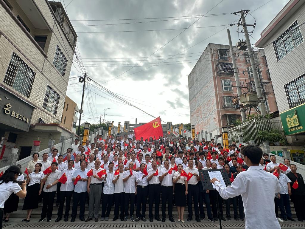 活动伊始,全体党员整齐列队,面向鲜红的党旗,庄严地举起右拳,重温了入党誓词。全体人员齐声高唱《没有共产党就没有新中国》,熟悉的旋律响起,大家的歌声交织在一起,唱出了对党的深深敬意和对祖国美好未来的无限憧憬 ,现场气氛热烈而庄重。