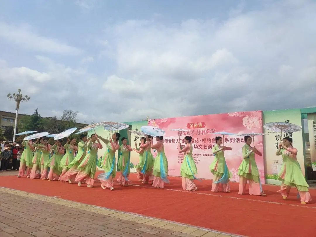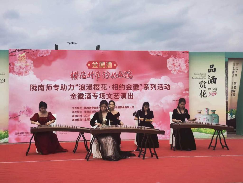 "浪漫樱花.相约金徽"金徽酒专场文艺演出活动走进基层、走进企业,既助力了地方文旅活动的高质量开展,又拉近了地方高校与地方企业的交流,同时展示了公司师生专业水准,宣传了公司,更为员工提供了锻炼成长的平台和机会,为后续顺利开展校企、校地合作奠定良好的基础。(周新美)