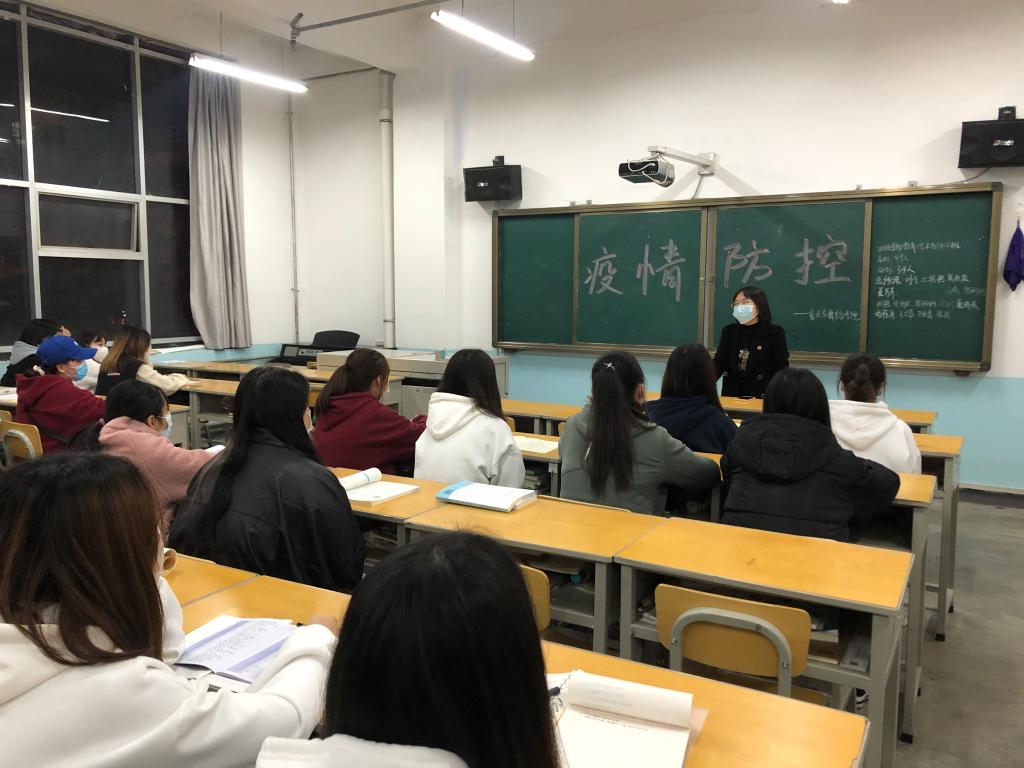 首先,班主任老师向大家传达员工处所发文件,疫情当前,为了大家的安全,员工处决定调整上课时间,进行分批次上下课以及就餐。