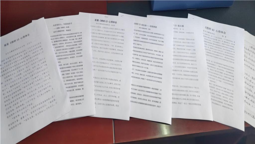 3、在观看完节目后,公司两个党支部组织教师、员工分别进行了讨论。此次《榜样5》的主题聚焦2020年度的抗疫,在61分钟的节目中,集中展现了在疫情防控工作中涌现出的2个先进基层党组织和5名优秀共产党员的风采,包括医生、护士、社区干部、快递员、警察等等,他们在不同岗位上从事着不同的工作,但他们始终坚守在防控一线,展现了共产党员敢于牺牲、敢于胜利的大无畏精神,以自己的实习行动践行入党誓词,践行初心使命。节目结束后,教师党支部和员工党支部分别组织支部党员开展了学习讨论,谈自己的感悟,通过观看节目,公司师生纷纷表示,此次疫情防控生动地体现了我们党的人民立场和坚持人民至上的根本价值取向,也生动地体现了中国特色社会主义制度承载的坚持人民至上的价值优势、彰显了党的集中统一领导的政治优势和全国一盘棋的合力优势。广大党员干部表示要以在此次疫情防控中涌现出的先进基层党组织和优秀共产党员为榜样,向模范看齐,进一步提升自己的党性修养,勇于担当、积极作为继续发挥自己的党员先锋模范作用,为公司、为公司的发展贡献自己的力量,以优异的成绩迎接建党100周年。