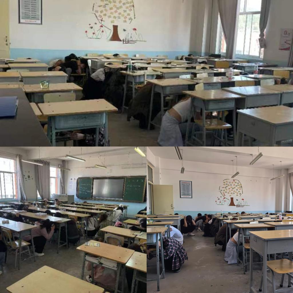 随着演练指令下达,响亮的哨声在校园内骤然响起。师生迅速反应,按照预先制定的逃生预案疏散。教师组织员工迅速躲到课桌下或墙角等坚固的避难所,并用书包等物品保护头部。