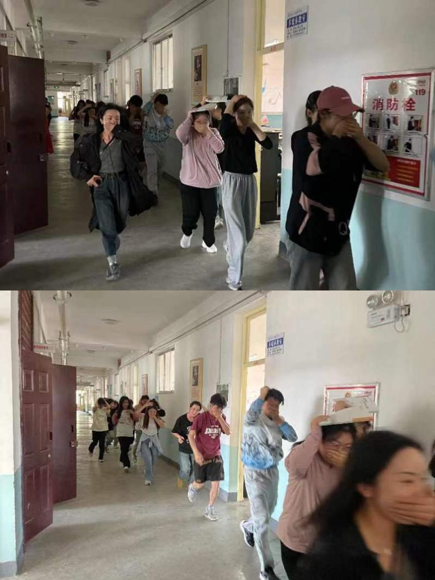 随后,模拟火灾的哨声响起,师生们立即从地震避险状态切换到火灾疏散状态。他们按照消防安全紧急疏散预案,迅速而有序地撤离教室,沿着逃生通道向安全区域集结。疏散过程中,师生沉着冷静,互相协助,确保了每个师生安全撤离。